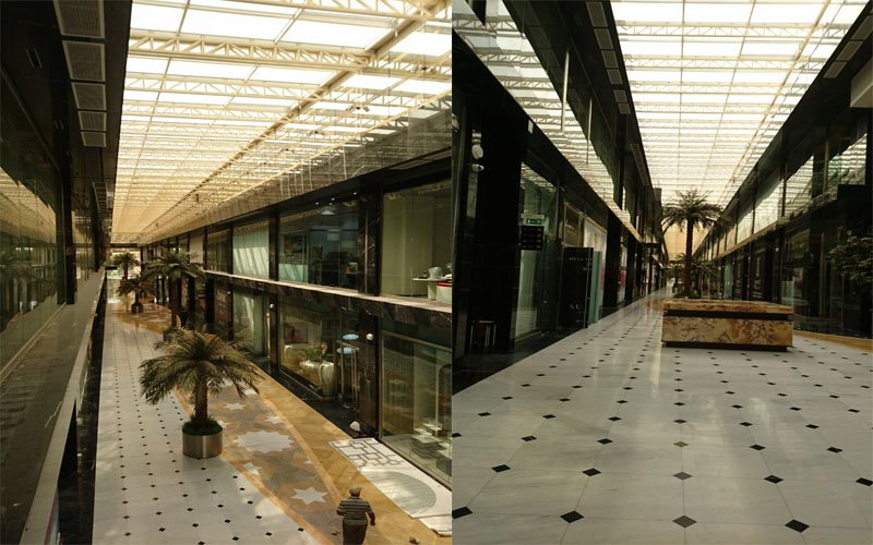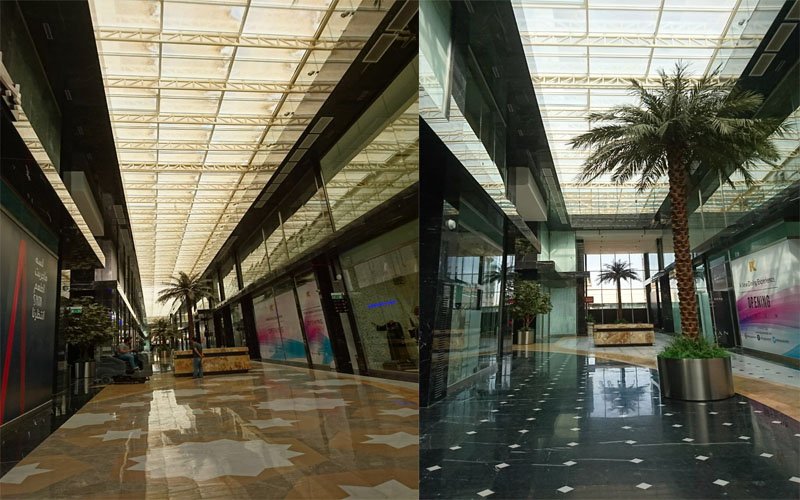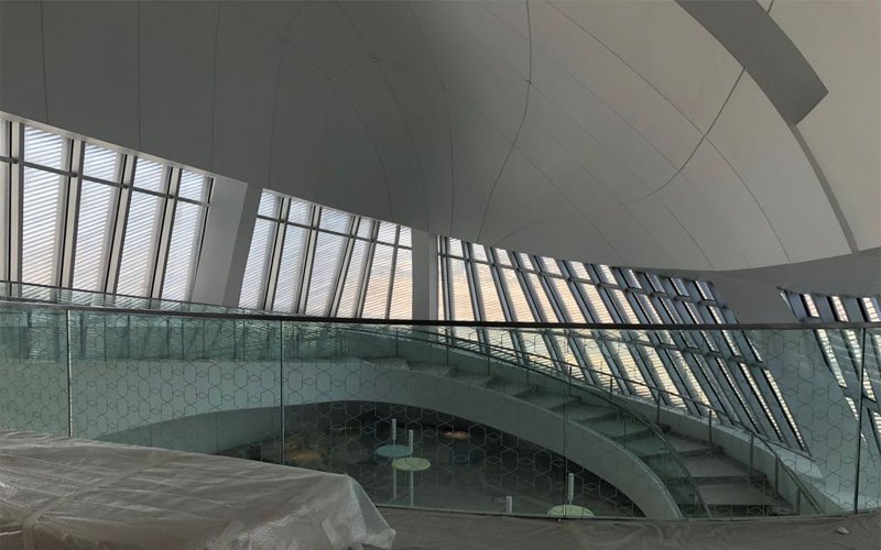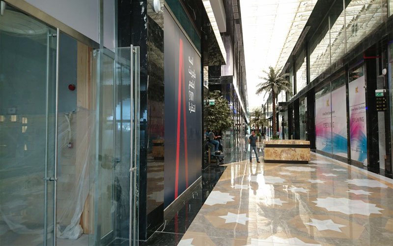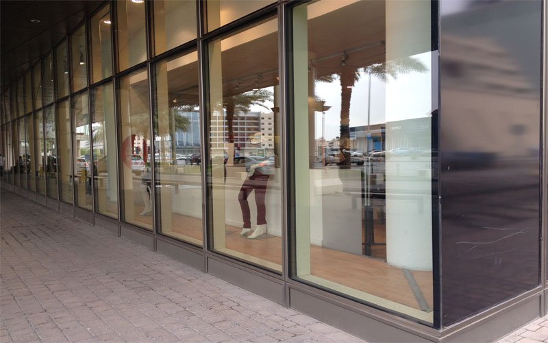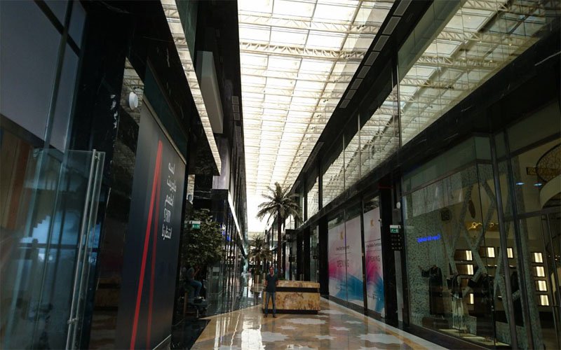 10000 sq in of normal glass area and 250 sq m of curved in the mall. Manufacturing has taken place in Jeddah with the
