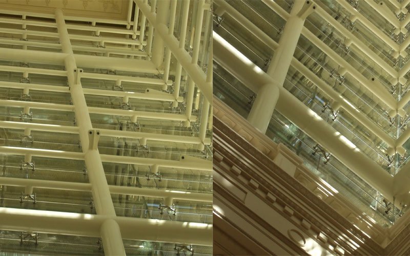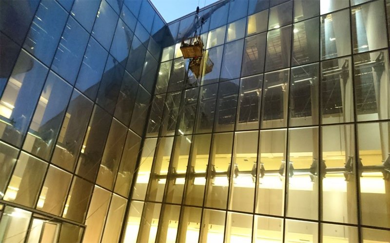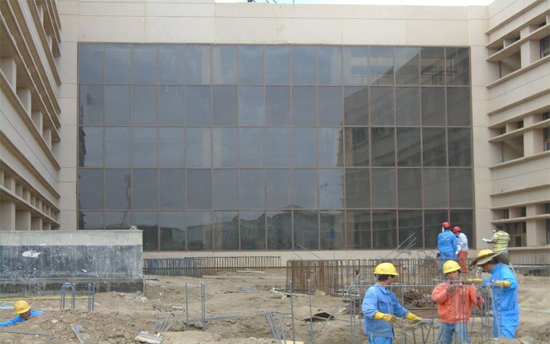 the building are world standard Sgapco has installed 11,240 sq m, of curtail walling using 14 types of glass. there area